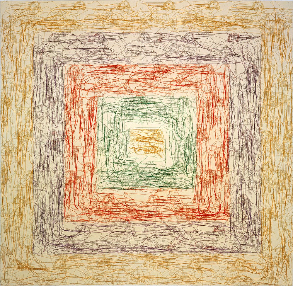 Ghada Amer, The New Albers, 2002. Broderie et gel medium sur toile
